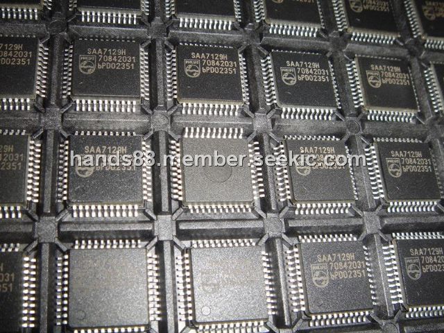 SAA7129H features: (1)Monolithic CMOS 3.3 V device, 5 V I2C-bus optional; (2)Digital PAL/NTSC/SECAM encoder; (3)System pixel frequency 13.5 MHz; (4)54 MHz double-speed multiplexed D1 interface capable of splitting data into two separate channels (encoded and baseband); (5)Three Digital-to-Analog Converters (DACs) for CVBS (CSYNC), VBS (CVBS) and C (CVBS) two times oversampled with 10-bit resolution (signals in brackets optional); (6)Three DACs for RED (CR), GREEN (Y) and BLUE (CB) two times oversampled with 9-bit resolution (signals in brackets optional).